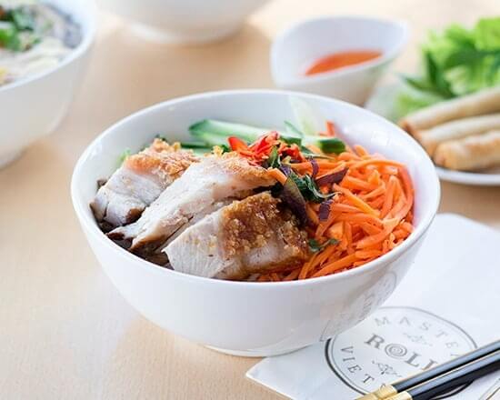 Served with roasted peanuts, cucumber, Vietnamese mints, spring onion, pickled carrots and n??c m?m. No carb or low carb option available