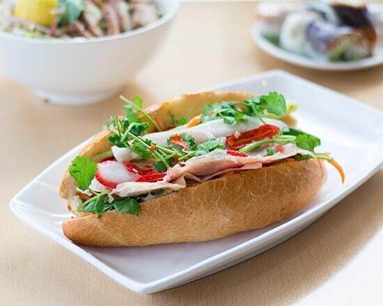 Served with house-made mayo, pâté, soy sauce, cucumber, coriander, pickled carrot, and daikon